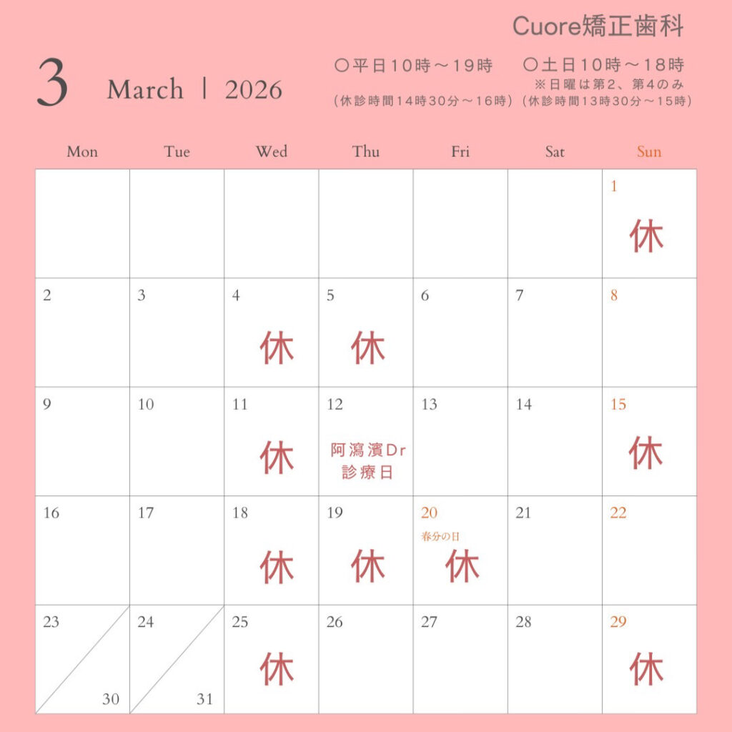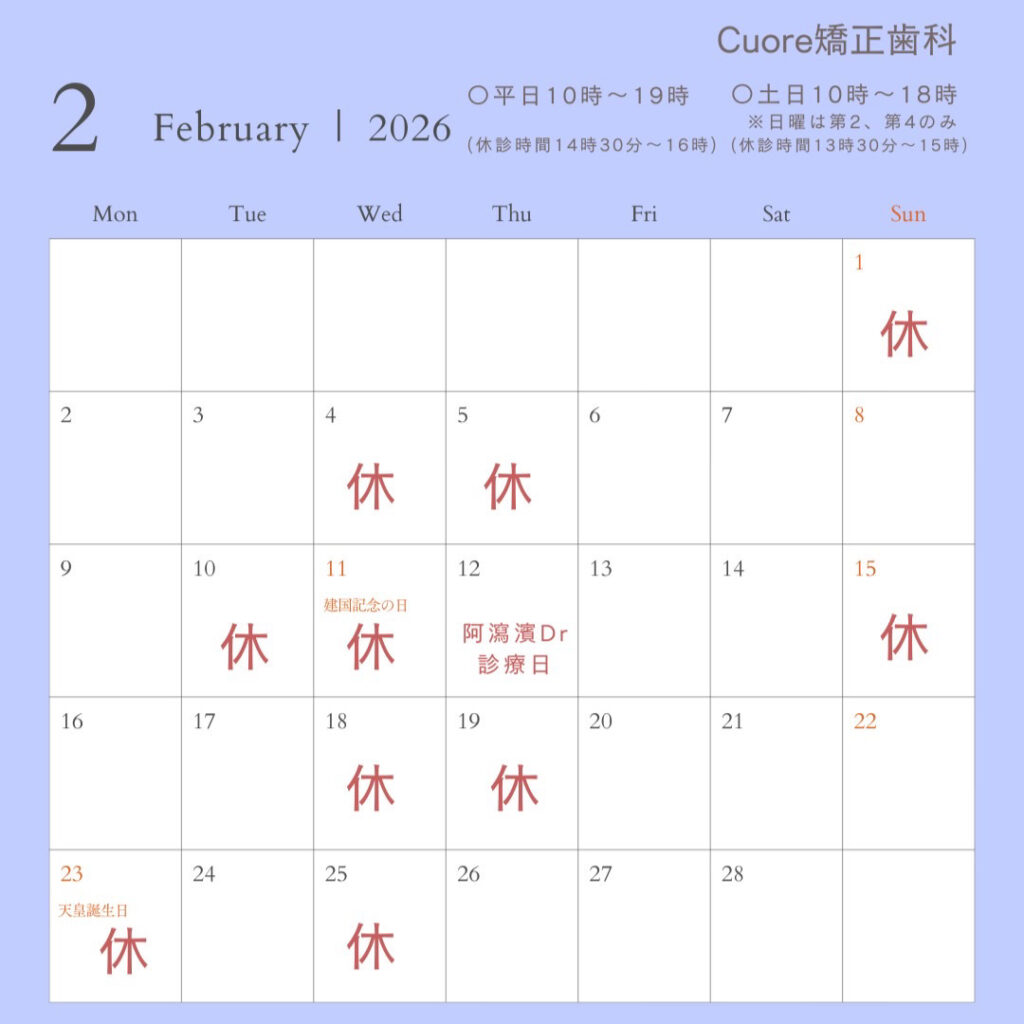 休診日カレンダー closed days calendar